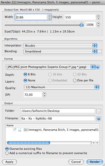 L'unico piccolo, insignificante problema è che Autopano non ti permette di salvare le immagini. Praticamente in nessun formato riutilizzabile con altri programmi. Ovviamente solo nella versione di prova. Se acquisti (a caro prezzo) la versione completa potrai fare anche questo. E dire addio alle scritte in sovrimpressione a tutte le foto create con Autopano.
